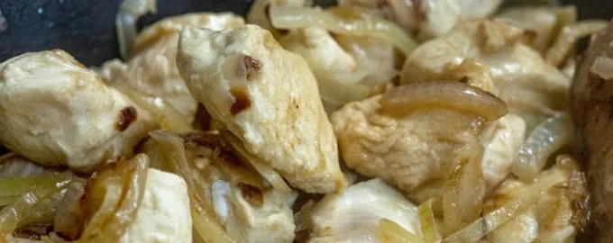 Το κοτόπουλο μαγειρεύεται σε άφθονο κρεμμύδι, το οποίο θα δώσει στο πιάτο ζουμερότητα και γεύση Το κοκκινιστό κρέας και η σάλτσα κρεμμυδιού ταιριάζουν